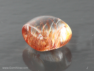 这个宝石的切割师傅很会选择切割角度,最大程度的保留了宝石内部的橘色按照一定顺序生长的针状包裹体。给宝石带来了多彩的彩虹折射效应。